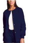 A Traditional Classic fit, round neck snap front warm-up with two patch pockets, knit cuffs, and a cell phone pocket. Center back length: 27 1/2".