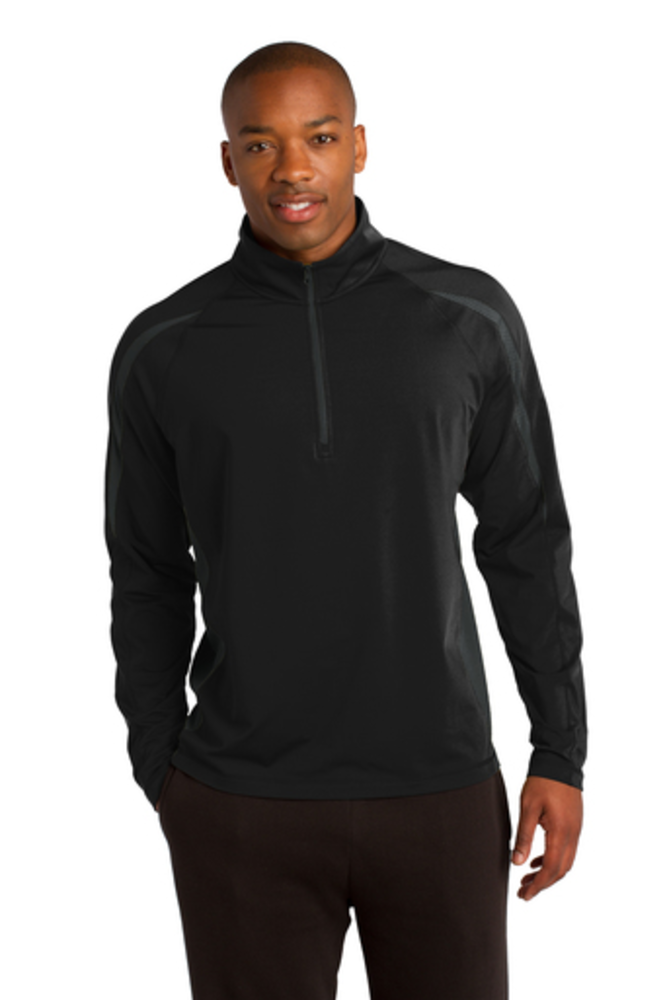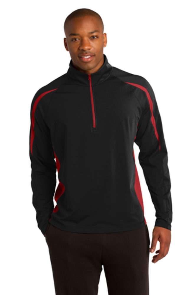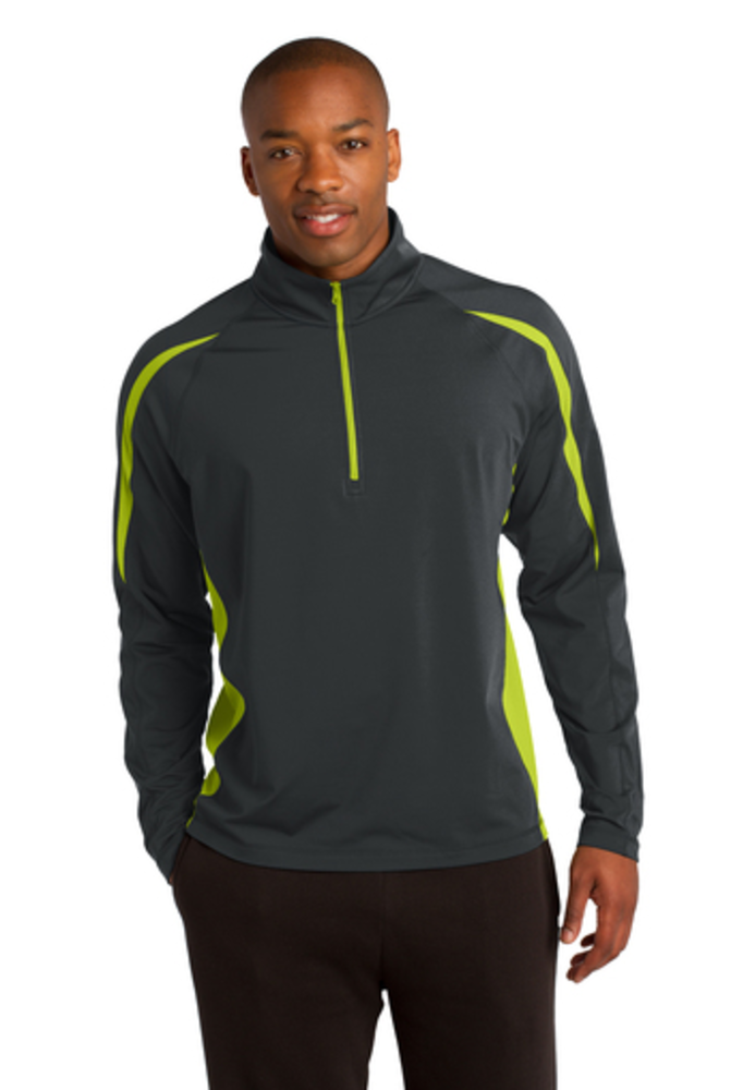 sku: ST851This soft-brushed pullover is stretchy and moisture-wicking with color splices and subtle texture.