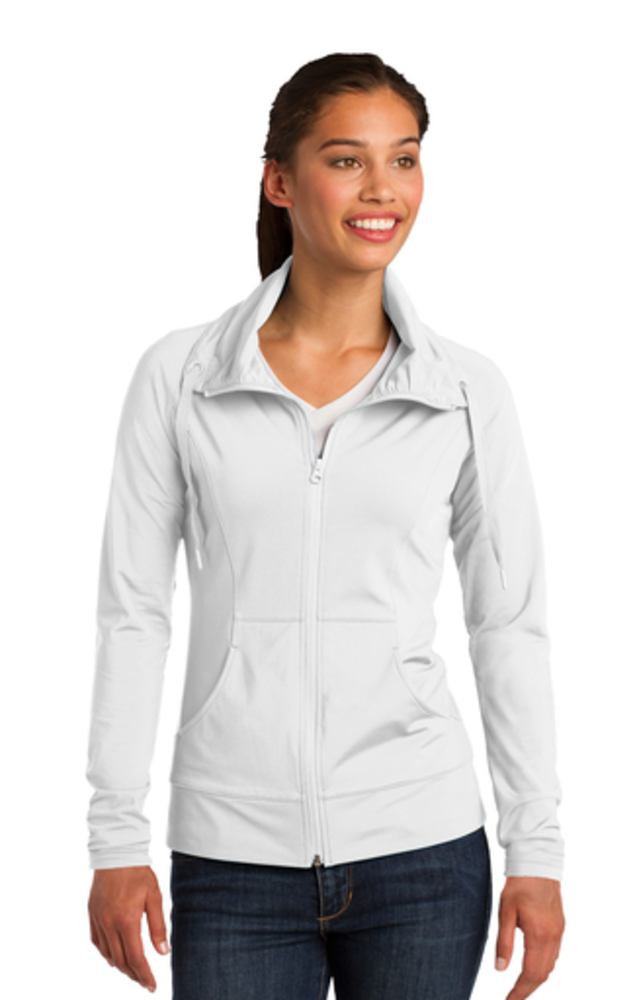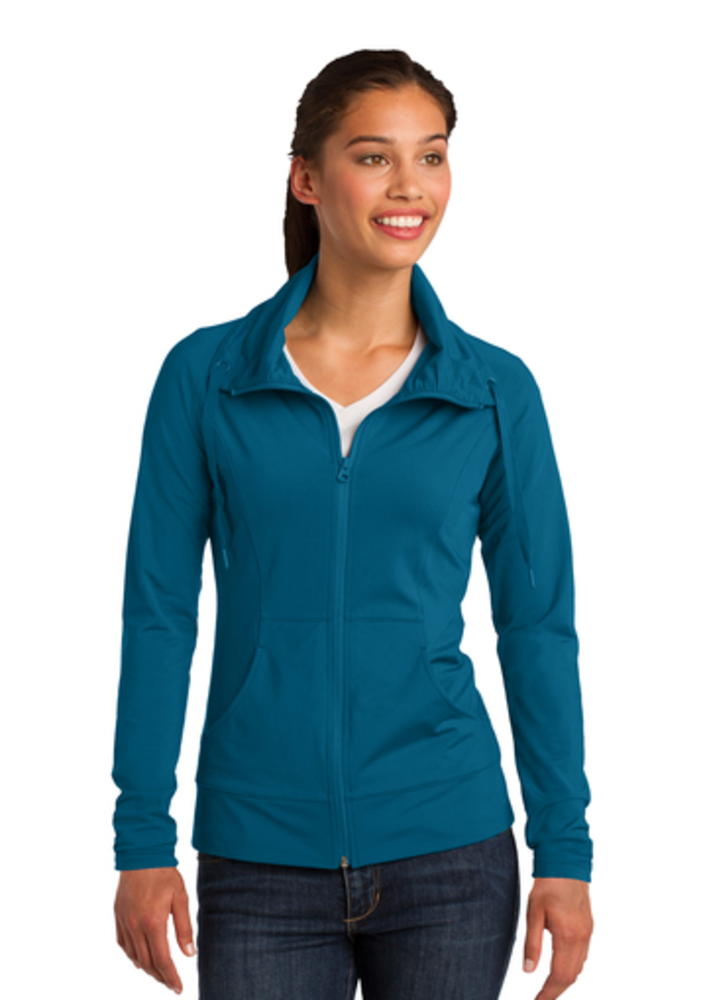 sku: LST852A stretchy, moisture-wicking performance jacket with a soft-brushed backing and unique cowl collar.
