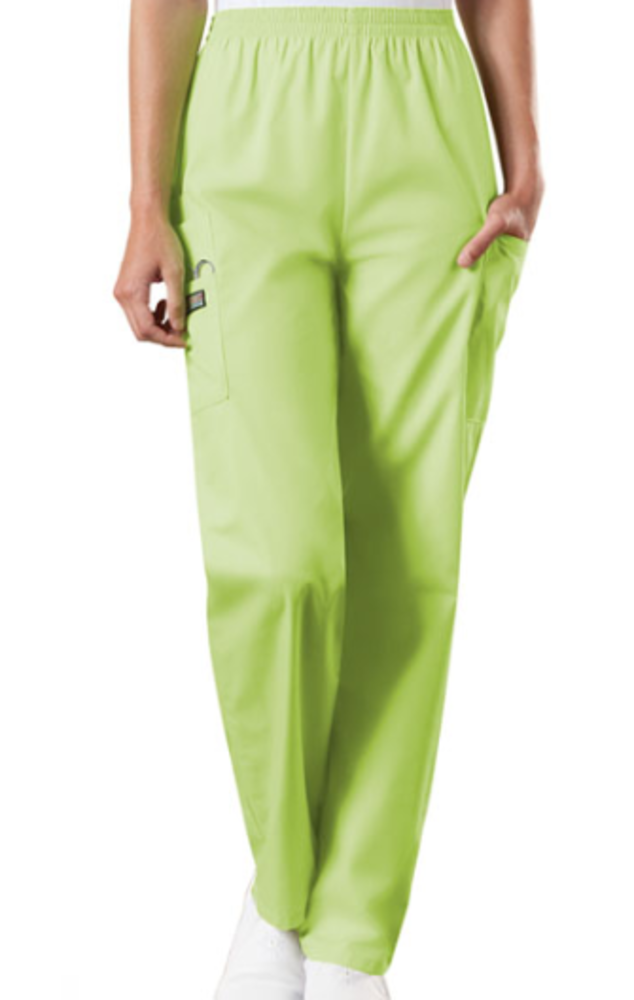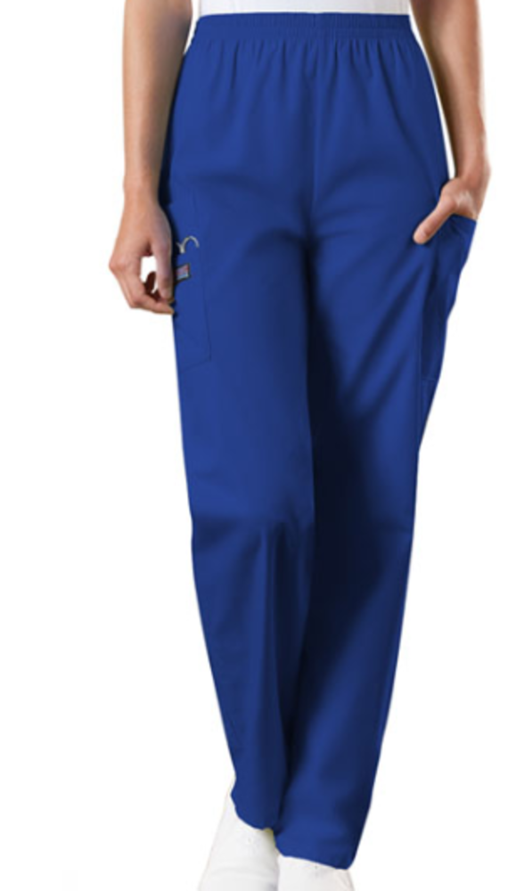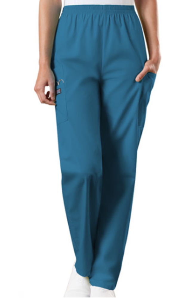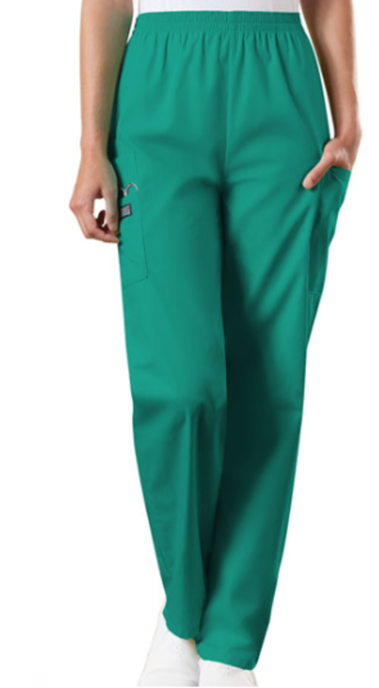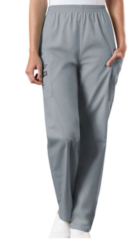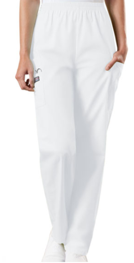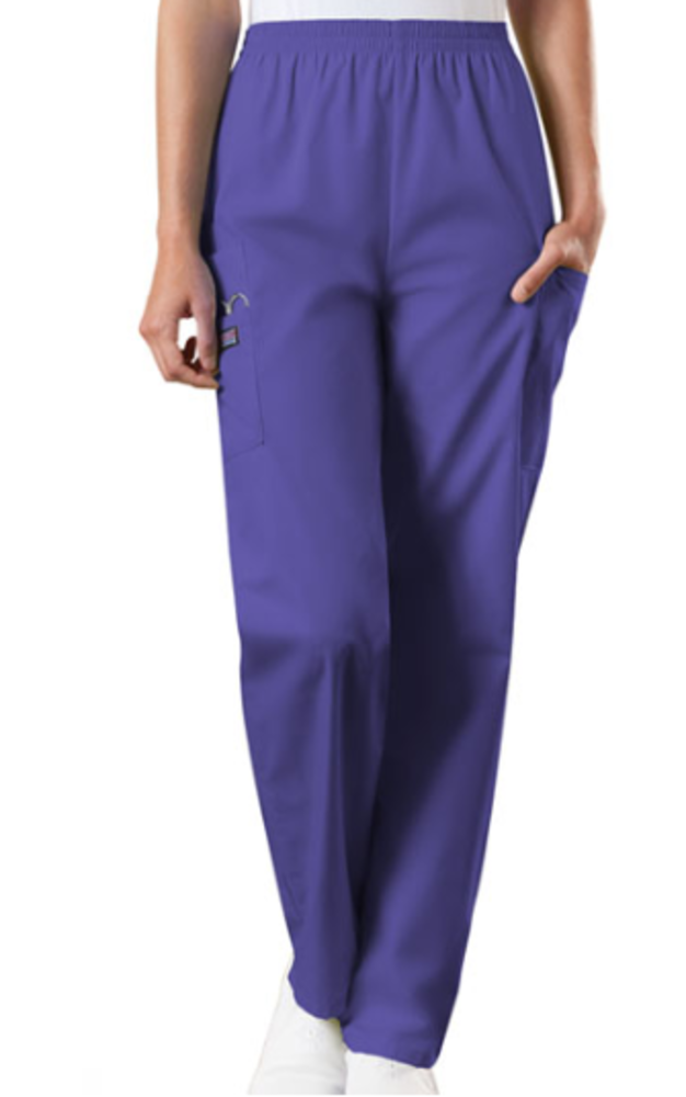 This Traditional Classic fit, elastic waist utility pant features a natural rise and tapered leg, two cargo pockets, a cell phone pocket and an outside scissor pocket. Inseam 30".