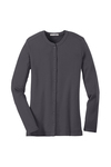 An indispensable layering piece, this extra soft cardigan has a shallow scoop neck and drapes nicely.