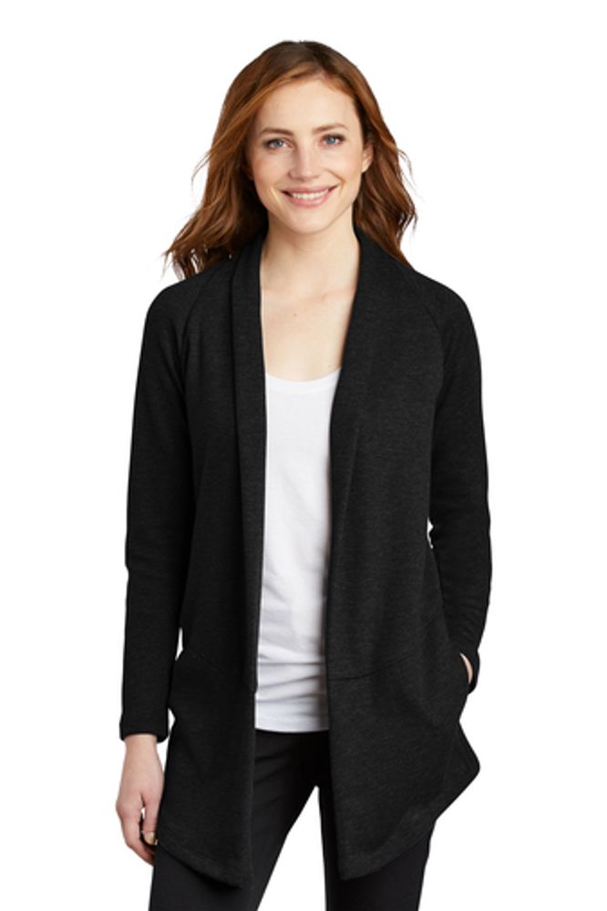 sku: L807This lightweight, dual-color cardigan layers beautifully and has a timeless appeal. An open front and front and back seaming details at the waist give it sophistication.